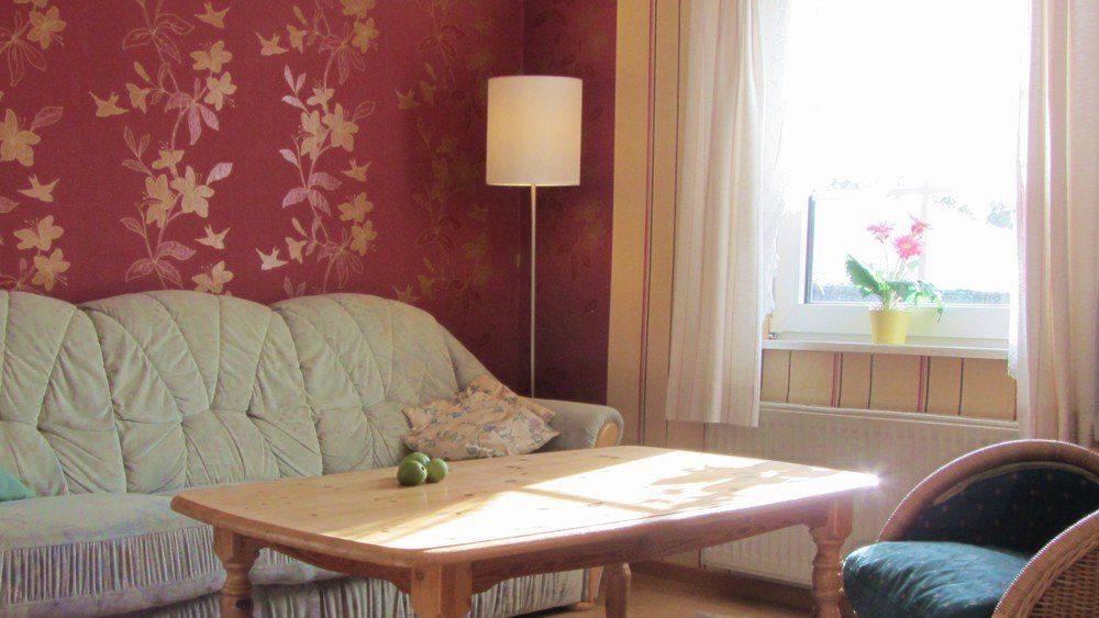 Der Wohnraum ist aufgeteilt in eine Kochnische (2-Platten-Herd. Kühlschrank, Spüle, kein Geschirrspüler, Kaffeemaschine, Wasserkocher, Toaster, Küchenmixer, Minibackofen), einen Essplatz für 4 Personen und eine Sofa-Ecke. Außerdem gibt es einen kleinen Flur und ein kleines Bad mit Dusche/WC.